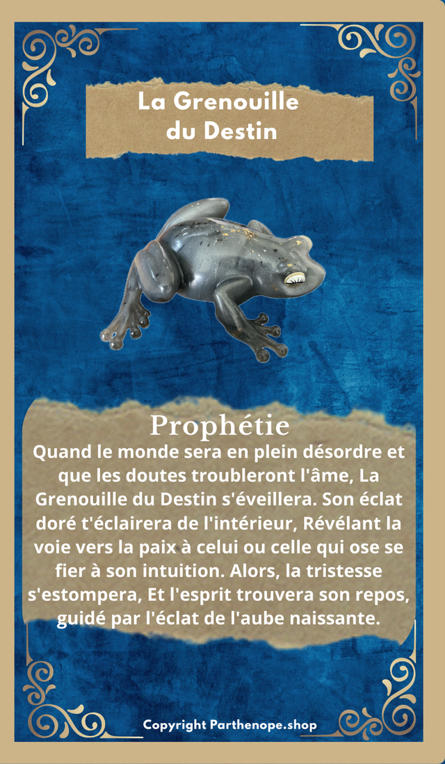 On raconte que cette grenouille est née d'un éclat de lune, tombé sur la terre des hommes. Elle incarne la connexion sacrée entre la nuit et les songes, la magie de l'intuition et la sagesse.